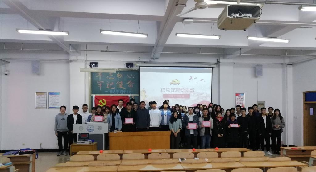 为在“不忘初心、牢记使命”主题教育中进一步做好“开门抓教育”,促进党团共建,十大买球的正规网站信息管理党支部于2019年11月14日在逸夫楼B303教室举办“不忘初心,牢记使命”主题教育知识竞赛总决赛。信息管理党支部成员及120余名同学观看本次比赛。