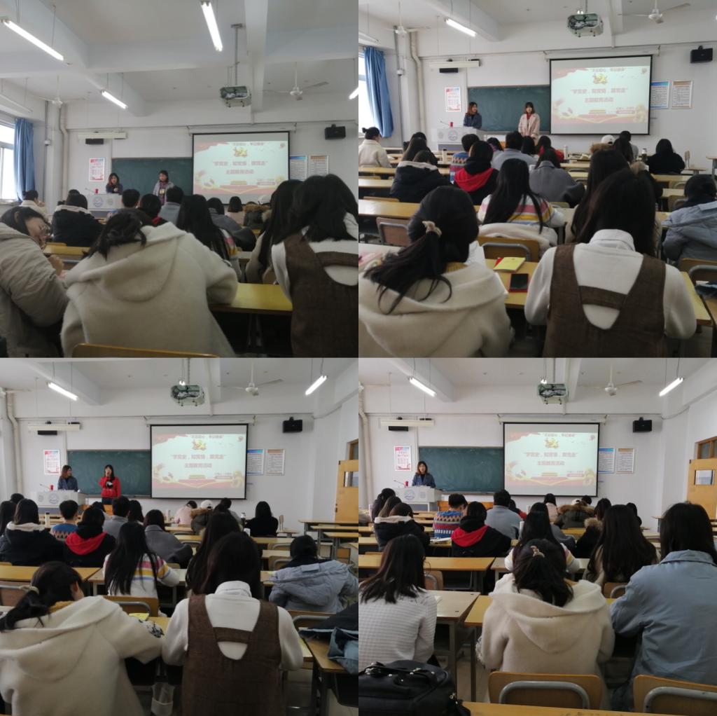 为进一步加强学生党员的思想政治教育,增进我支部党员对党的历史、现状和理论的了解,增强学生党员对党的感情,进一步坚定党员信念和跟党走的决心,旅游管理党支部于2019年11月21日下午16:20分,逸夫楼A609组织开展“不忘初心、牢记使命”主题教育之“学党史,知党情,跟党走”主题教育活动。