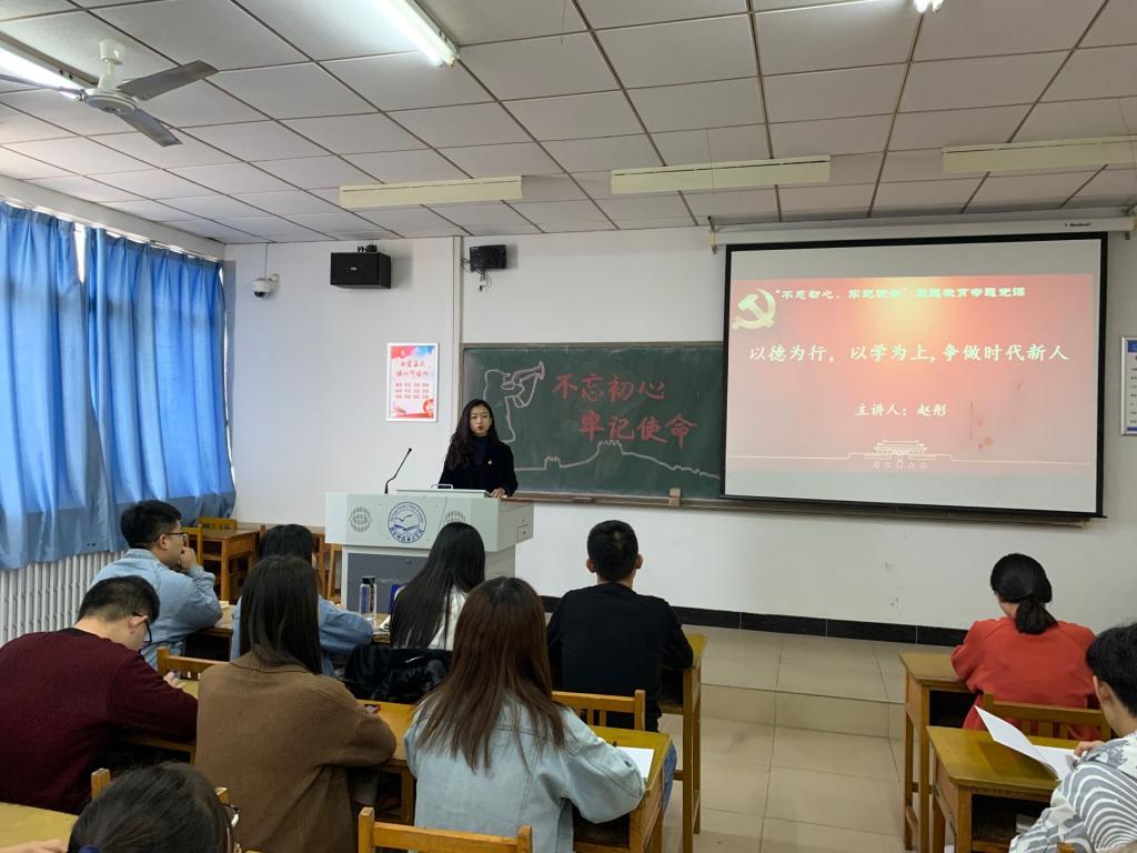 2019年10月31日,十大买球的正规网站信息管理党支部书记为支部党员、积极分子讲授“不忘初心,牢记使命”专题党课。