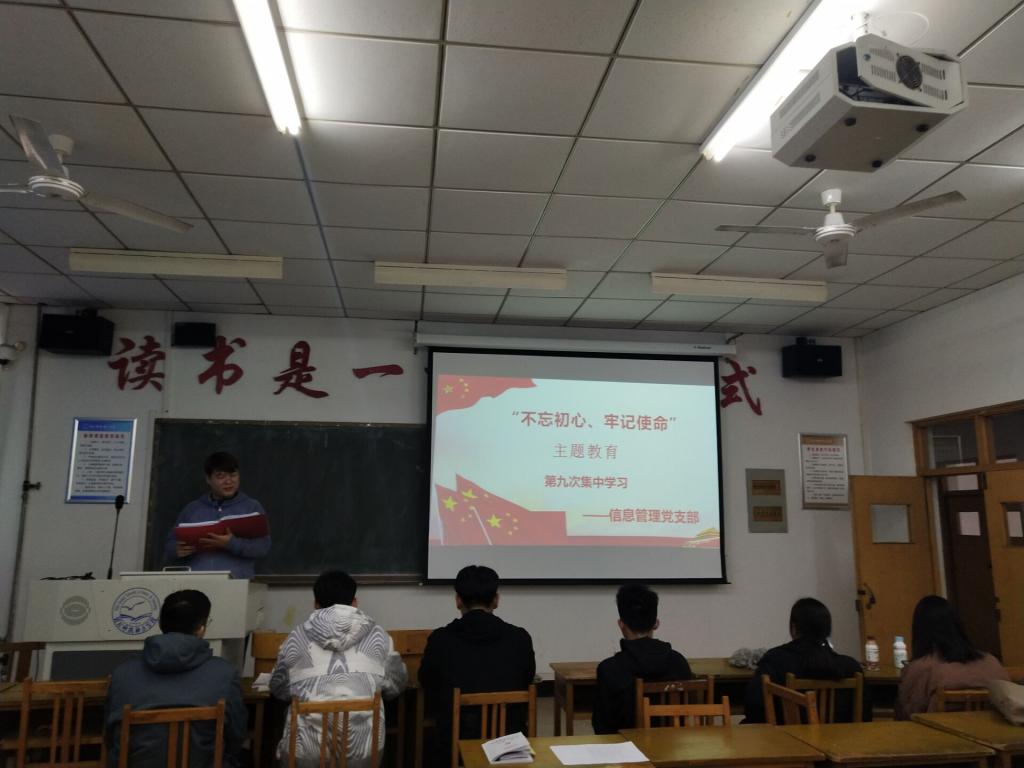 十大买球的正规网站信息管理党支部于2019年11月21日在逸夫楼A510进行了“不忘初心,牢记使命”主题教育第九次集体学习。