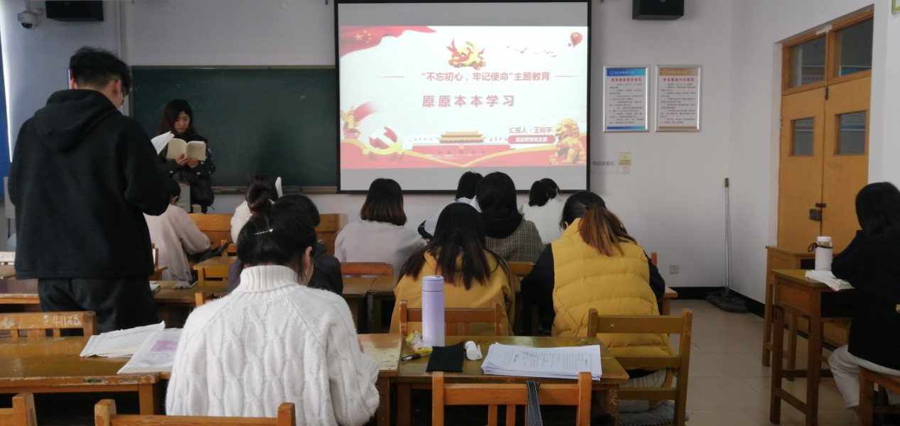 2019年10月28日,旅游管理党支部于逸夫楼A606开展“不忘初心、牢记使命”主题教育之原原本本学原著活动。