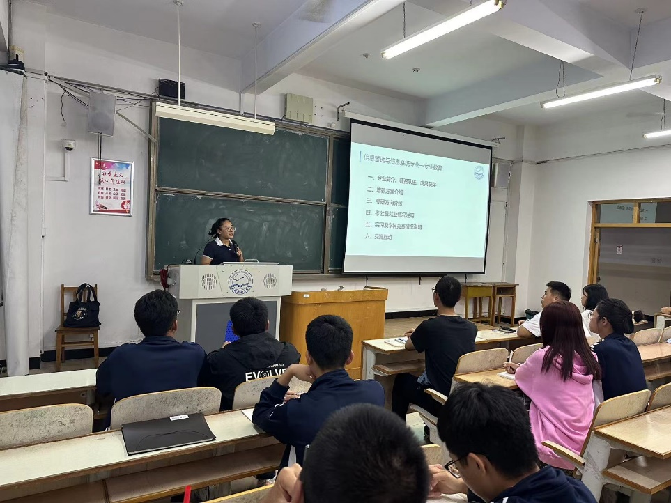 根据学校学院的相关通知规定,也为了让2024级新生能够更好地了解专业发展、培养方向、专业就业等情况,信息管理与信息系统专业于2024年9月10日晚上7:30—8:30,在A309开展了专业教育讲座。专业带头人李晖老师对专业及教学部情况、培养方案、考研就业等方面进行了深入的说明,并与学生交流互动。