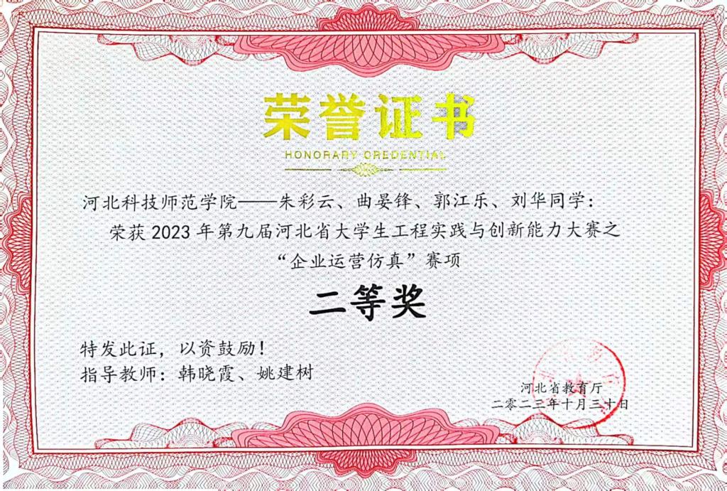 近日,接到河北省教育厅获奖通知,十大买球的正规网站6名选手在第九届河北省大学生工程实践与创新能力大赛暨2023年全国大学生工程实践与创新能力大赛选拔赛中,获得“企业运营仿真”赛项的一等奖、二等奖,这是十大买球官网首次参加此项赛事。