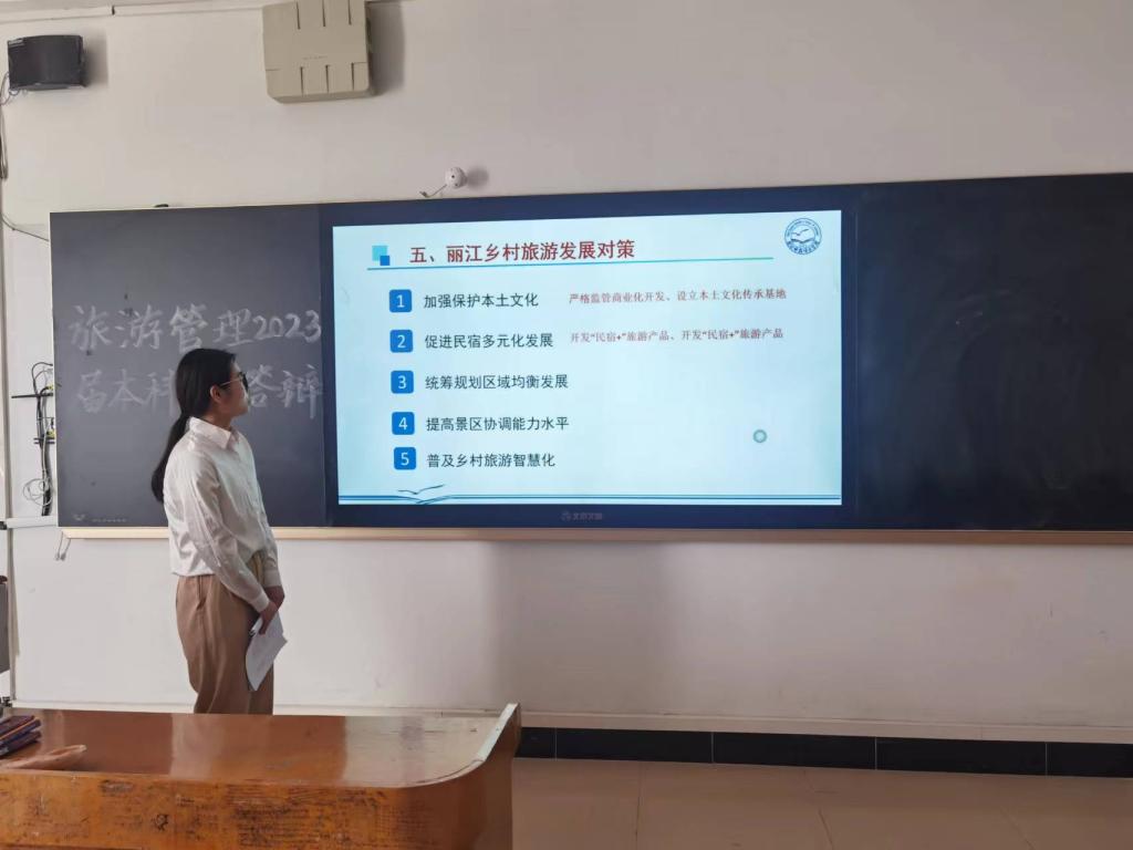 旅游管理专业2023届本科生毕业论文答辩工作于5月27日-5月28日在逸夫楼多媒体教室如期举行。本届答辩毕业生共52人,分为2个答辩小组,共有12名答辩评委参与答辩工作。
