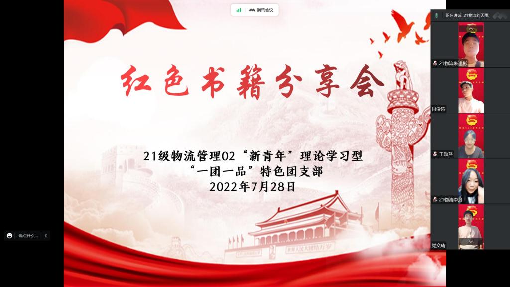 为深化对习近平新时代中国特色社会主义思想的理解,引导同学们树立正确的人生观、价值观和世界观,2022年暑期,十大买球的正规网站21级物流管理02“新青年”理论学习型“一团一品”特色团支部开展阅读红色书籍活动,并于7月28日召开红色书籍分享交流会。