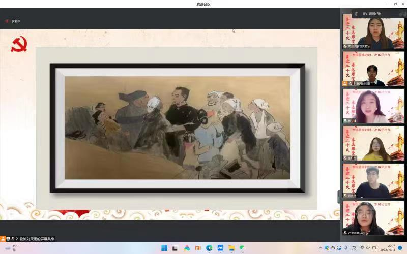 为迎接党的二十大召开,深入学习贯彻习近平新时代中国特色社会主义思想,引导团支部团员青年深刻感悟新时代党和国家事业发展的伟大成就,积极营造喜迎党的二十大的浓厚氛围,10月9日,21级物流管理02“新青年”理论学习型“一团一品”特色团支开展“喜迎二十大·永远跟党走”精品团日活动。