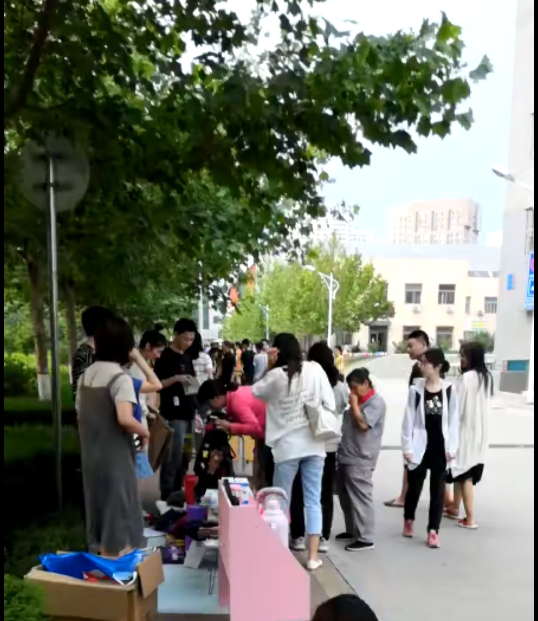 跳蚤市场于6月17日到19日在我秦皇岛校区的五号楼与六号楼附近道路两侧开市。17日下午就陆陆续续的有同学带着自己的商品来摆摊,卖家主要是大四毕业生。一方面,临近毕业许多在宿舍购置的物品无法带回家,或者是日后使用价值不大,为了避免丢弃造成不必要的浪费,同时也可以获得一部分收入,跳蚤市场成了毕业生们处理闲置物品的重要途径。另一方面,因为跳蚤市场出售的都是二手商品,又是学长们处理生活用品,大家并不是以盈利为目的,所以商品的价格普遍低于市面价格十分诱人,因此也吸引了大量的同学来淘宝。