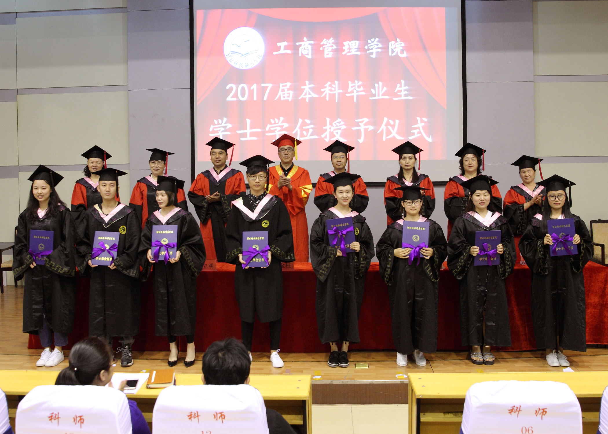 2017年6月13日上午9:00,十大买球的正规网站2017届毕业生学士学位授予仪式在学术报告厅隆重举行。十大买球的正规网站党政领导、各学科专业带头人、毕业班辅导员(班主任)和2017届毕业生及在校生代表参加了仪式。