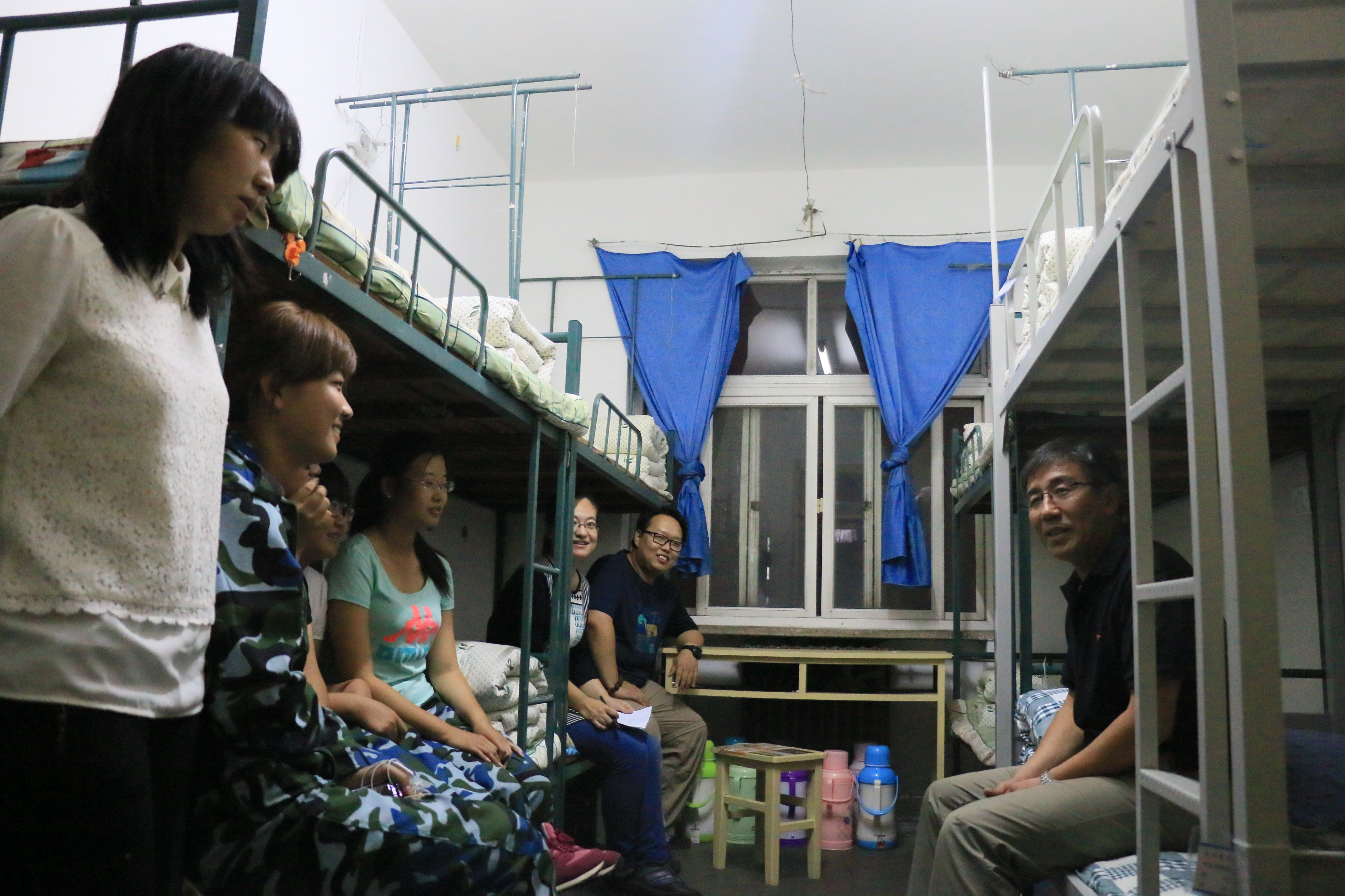 9月24日晚上7点,十大买球的正规网站党委书记刘恩峰、院长侯金柱、党委副书记副院长李强华、副院长黄立明在全体辅导员老师的陪同下到学生宿舍一一看望慰问2015级新生,向新生带去中秋祝愿。
