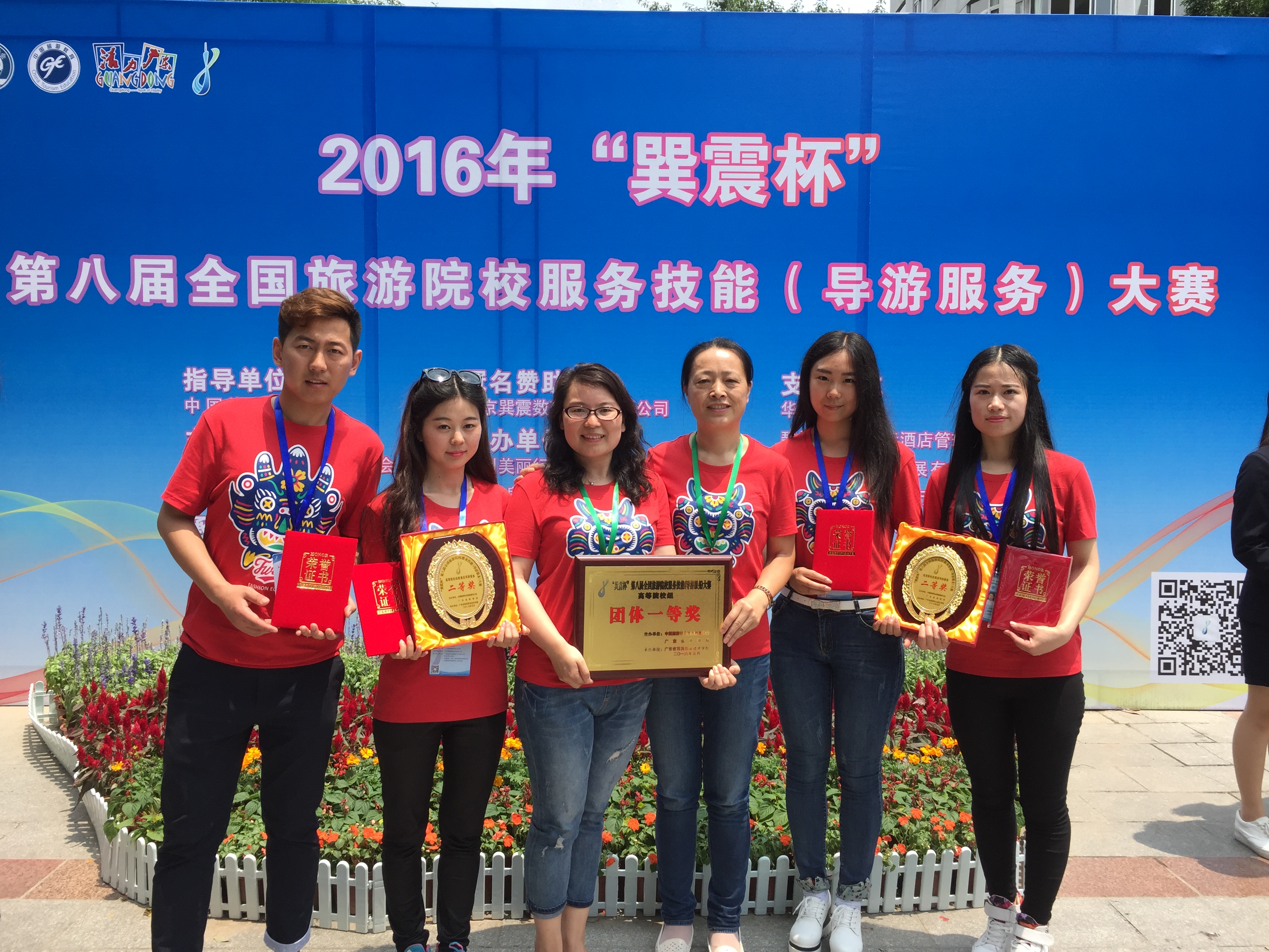 2016年5月15日,十大买球的正规网站师生在广州参加第八届全国旅游院校服务技能(导游服务)大赛,为十大买球官网赢得团体一等奖,参赛学生获得两项二等奖和两项三等奖。