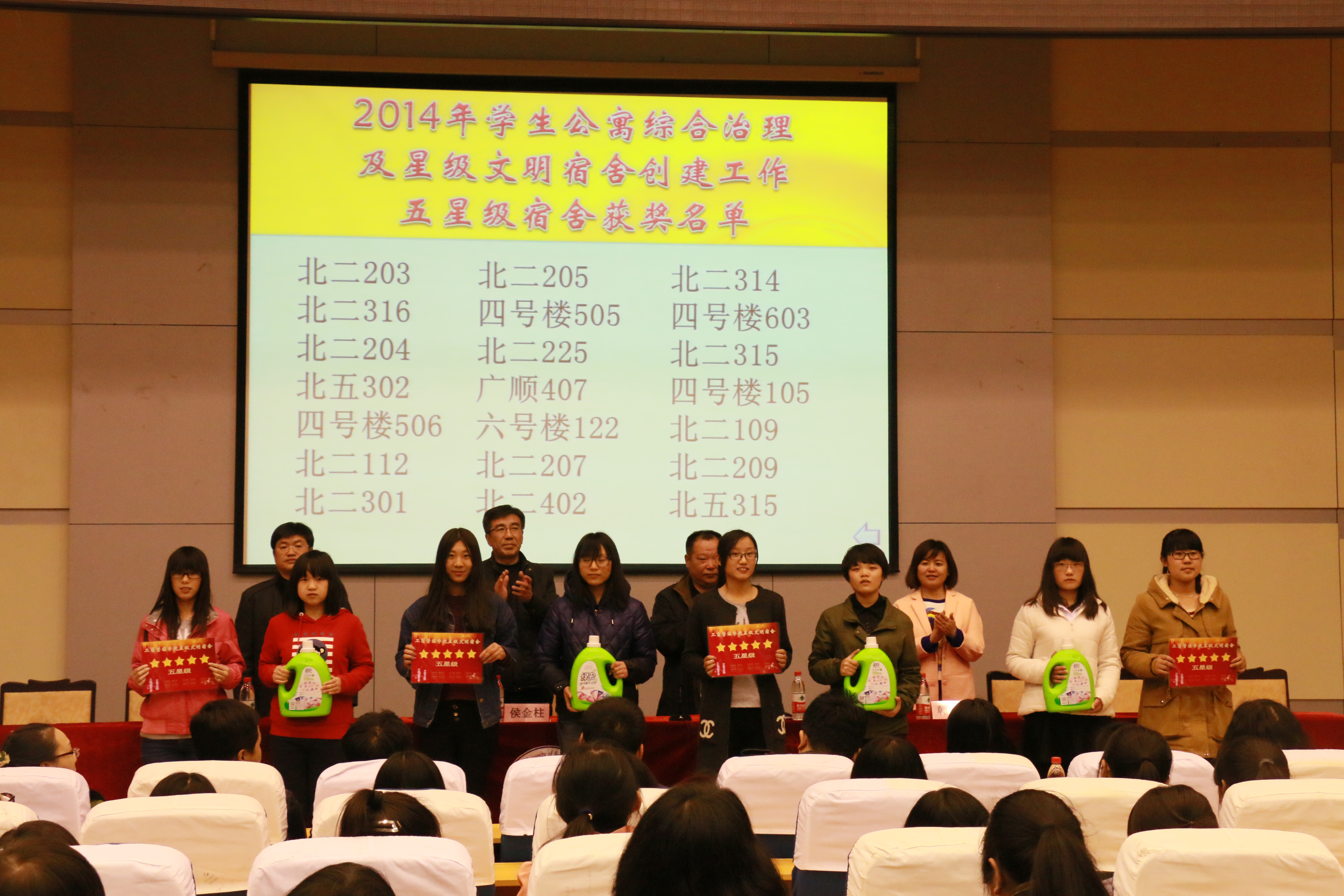 2015年4月7日晚七点,十大买球的正规网站在学术报告厅举行2014年学生公寓综合治理及星级文明宿舍创建工作表彰大会。出席本次大会的有学生处副处长徐树军,十大买球的正规网站党委书记侯金柱,党委副书记、副院长赵敏,以及全体辅导员和班主任老师。