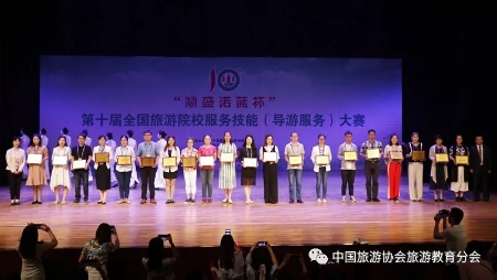5月13日,十大买球的正规网站学生在第十届“鼎盛诺蓝杯”全国旅游院校服务技能(导游服务)大赛中获得团体一等奖1项,高校组普通话导游服务一等奖1项、二等奖1项,高校组英语导游服务三等奖2项。
