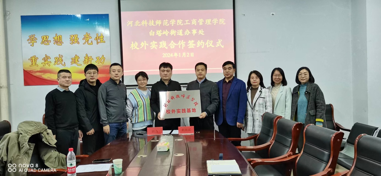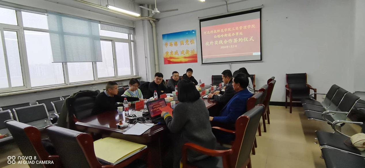 2024年1月2日下午,十大买球的正规网站十大买球的正规网站与秦皇岛市白塔岭街道办事处校外实践合作协议签约仪式在逸夫楼608会议室举行。出席本次签约仪式的有十大买球的正规网站领导班子成员及人力资源教学部教师代表,白塔岭街道办事处党工委书记、党工委副书记、办事处主任、组宣委员及党建办主任等五位领导。