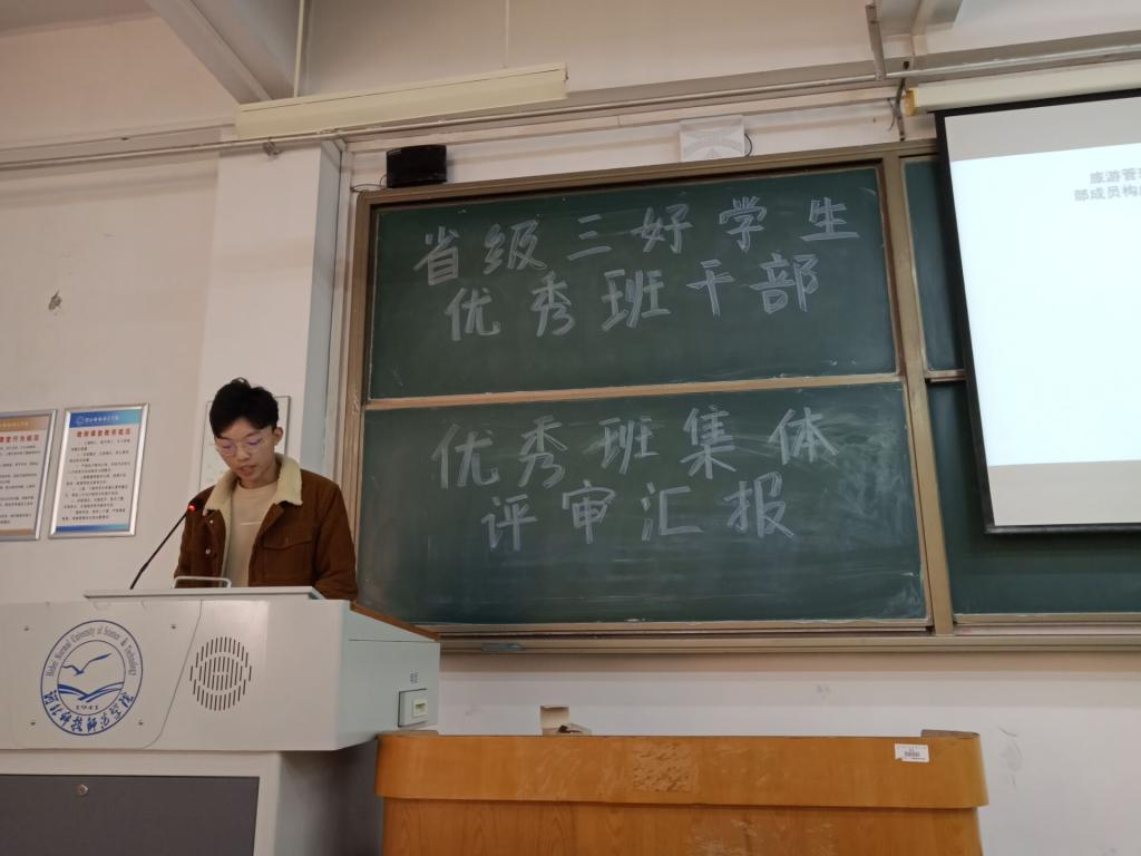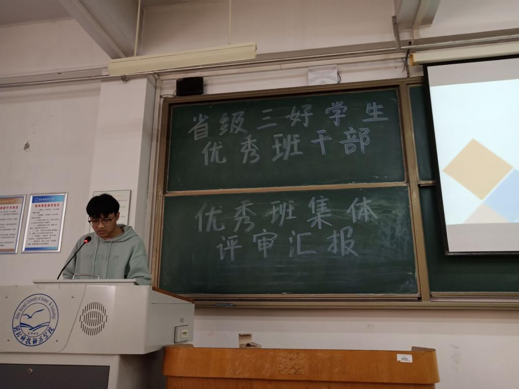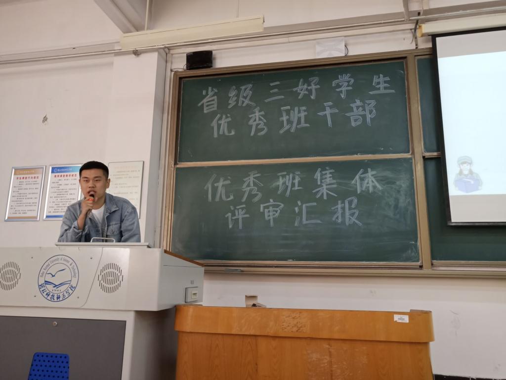 2021年4月26日下午16:00,十大买球的正规网站在B501教室召开2020-2021学年省级三好学生、优秀学生干部和先进班集体推荐汇报大会。学院领导及各专业辅导员(班主任)出席并担任评委,各班级学生干部和学生代表参会观摩。
