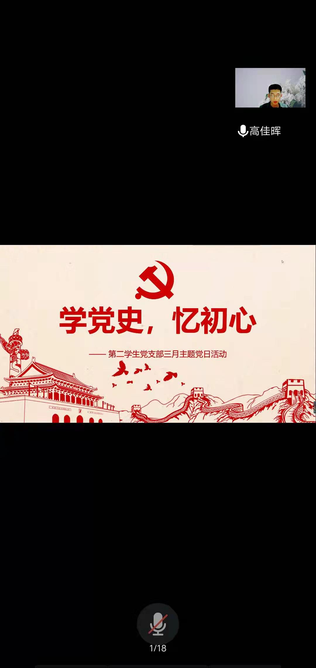 2021年3月28日晚7点30分,十大买球的正规网站第二学生党支部在线上平台开展了“学党史、忆初心”主题党日活动,全体党员到场参加。活动由支部书记主持,首先给全体党员讲解了党史的发展脉络,之后,支部成员通过观看视频、党史故事分享、共唱爱国歌曲、分组讨论忆初心等形式结合展开,通过本次活动,支部党员们对习近平新时代中国特色社会主义思想和中国共产党的百年光辉历程有了更深层次的了解,思想进一步得到洗礼,更坚定了理想信念,党员们纷纷表示,要自觉做共产主义远大理想和中国特色社会主义共同理想的坚定信仰者和忠诚实践者,肩负起时代使命,在全面建设社会主义现代化的新征程上挥洒汗水、贡献青春力量。