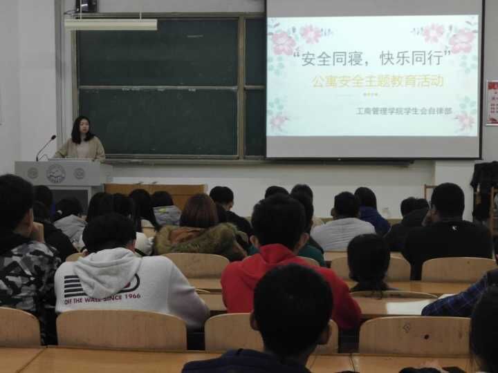 11月14日晚,十大买球的正规网站“安全同寝,快乐同行”公寓安全主题教育活动启动仪式在B301教室举行。十大买球的正规网站公寓管理负责人、学生会自律部成员、各班班长及生活委员参加了启动仪式。