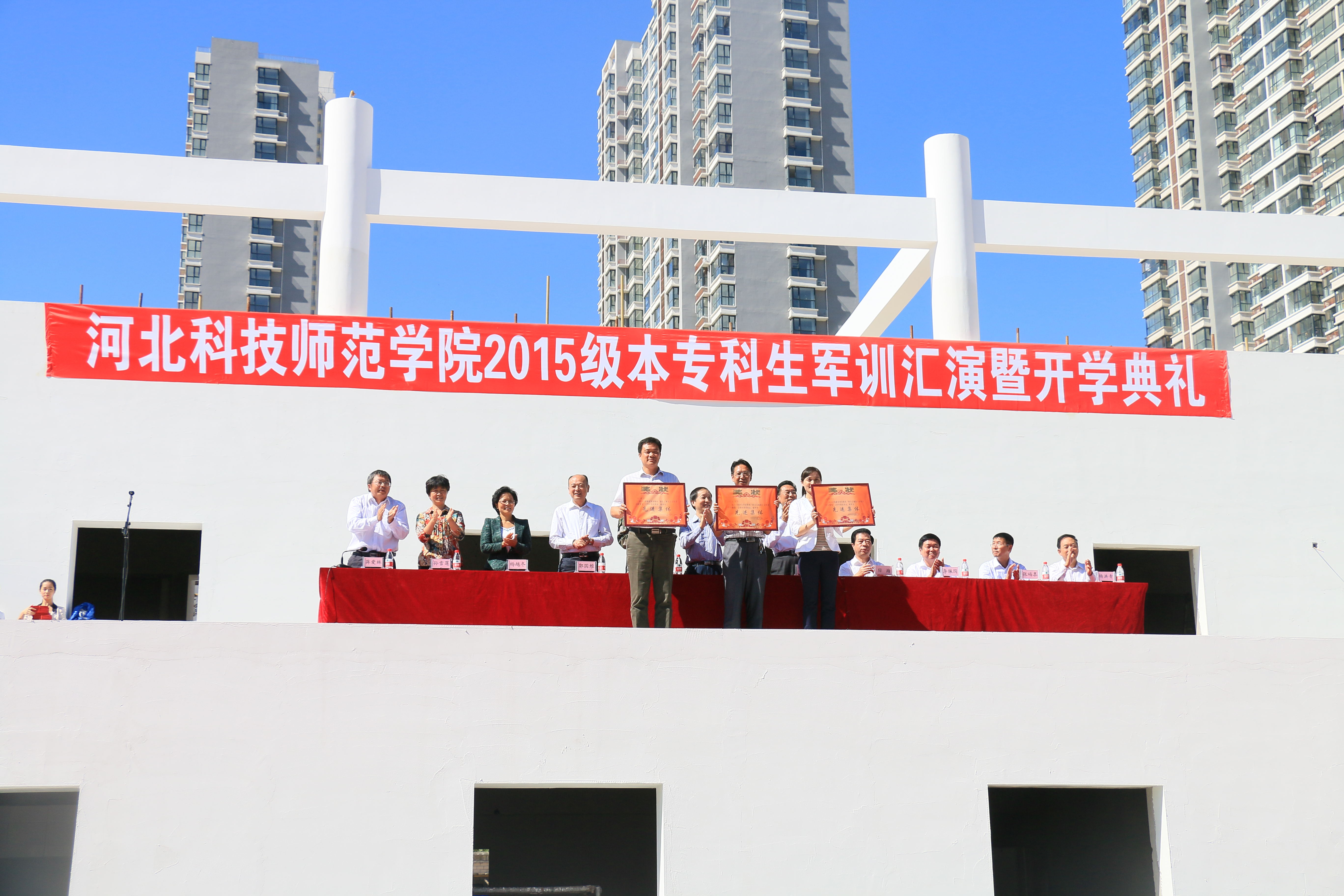 2015年9月26日上午10:30十大买球的正规网站秦皇岛校区于后院操场举行2015级本专科生军训汇演暨开学典礼。