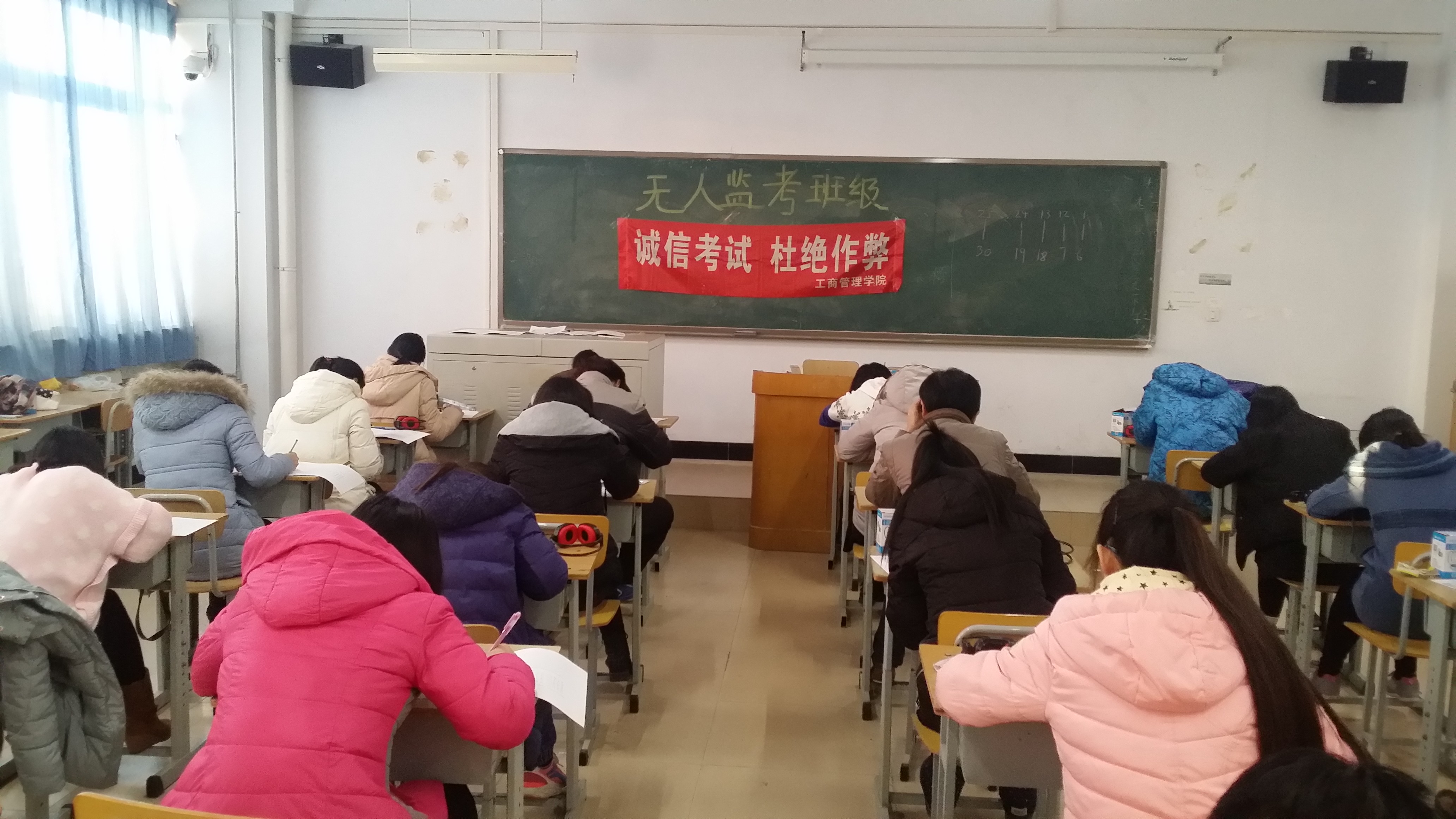 十大买球的正规网站学生为检验学风考风建设和文明养成活动教育效果,主动申请在期末考试中无人监考。申请班级召开专题班会并宣誓,承诺自觉遵守考试规定,诚信考试,不违纪,不作弊,并签订诚信考试承诺书,学院认真审核论证后报教务处审批备案。本次考试中共有15个班级申请并实施了无人监考,无任何违规违纪现象发生,表现良好,达到预期效果。