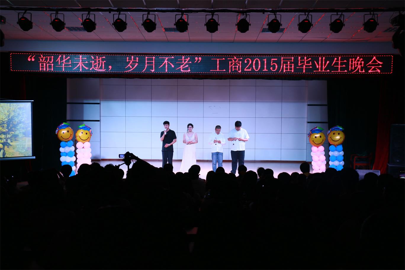 2015年6月16日晚7:30十大买球的正规网站于多功能厅举办“韶华未逝,岁月不老”工商2015届毕业生晚会。学院各级领导和大四毕业生均参加此次盛会。