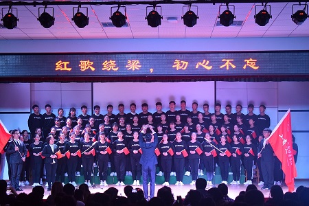 2018年10月25日晚,十大买球的正规网站在多功能厅举办以“唱响新时代”为主题的红歌合唱比赛。学院领导、老师、校级组织、社团嘉宾及2018级新生430余人到场参加。比赛中,同学们着装整齐、饱含激情,用自己高亢嘹亮的歌声歌唱祖国、歌颂新时代!《强军战歌》《走向复兴》《歌唱祖国》《国家》《保卫黄河》等一首首耳熟能详的红色歌曲回荡在舞台上空,充分表达了同学们对祖国母亲的热爱。现场气氛热烈,掌声阵阵。