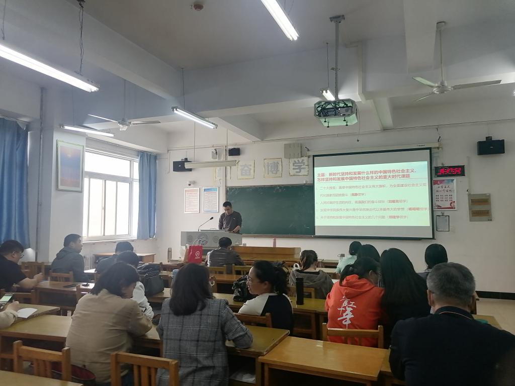 全国上下如火如荼开展学习贯彻习近平新时代中国特色社会主义思想主题教育之际,十大买球的正规网站教工党支部根据《十大买球的正规网站教工党支部深入开展学习贯彻习近平新时代中国特色社会主义思想主题教育方案》的安排,于2023年5月11日下午在逸夫楼A601开展了主题为“新时代坚持和发展什么样的中国特色社会主义、怎样坚持和发展中国特色社会主义的重大时代课题”的读书会活动。