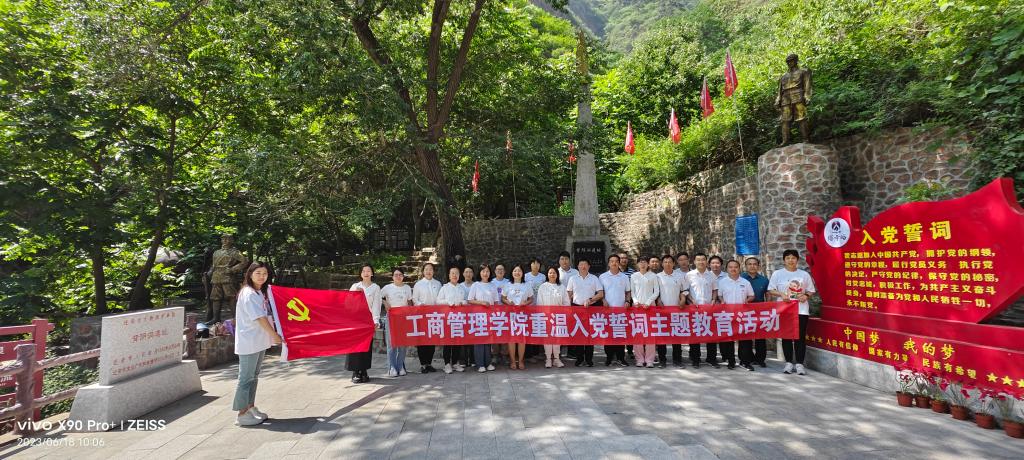为深入开展学习贯彻习近平新时代中国特色社会主义思想主题教育,始终保持党的强大凝聚力战斗力,积极推动全党积极担当作为、不断开创事业发展新局面,集中展示我们党薪火相传、兴旺发达的蓬勃气象,2023年6月18日,在十大买球的正规网站党委书记赵敏同志的带领下,十大买球的正规网站教工党员赴迁安市塔寺峪开展了“重温入党誓词,坚定理想信念”的主题党日活动。