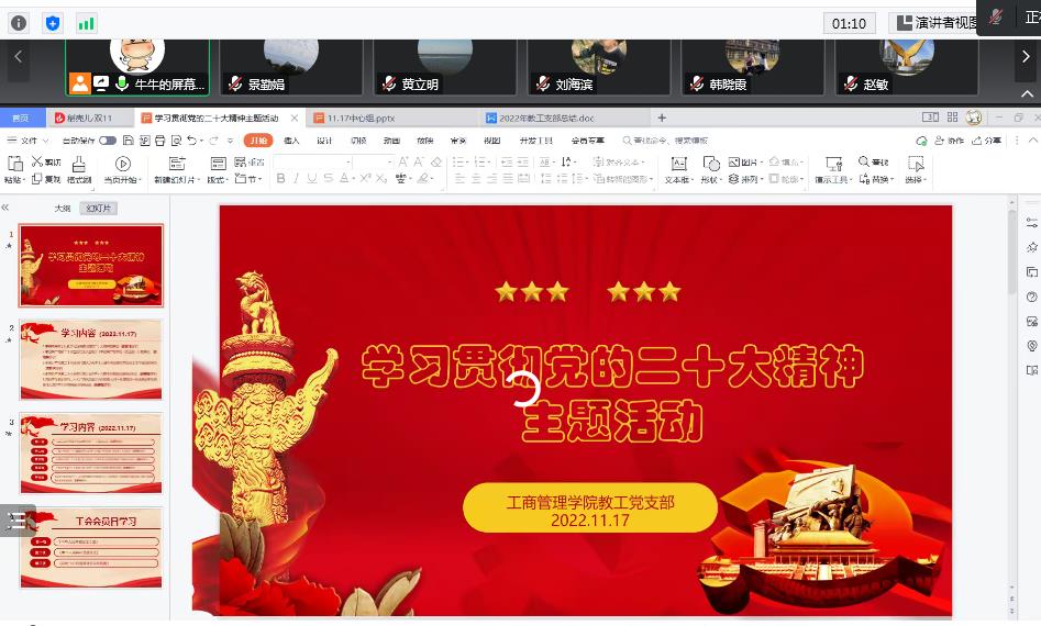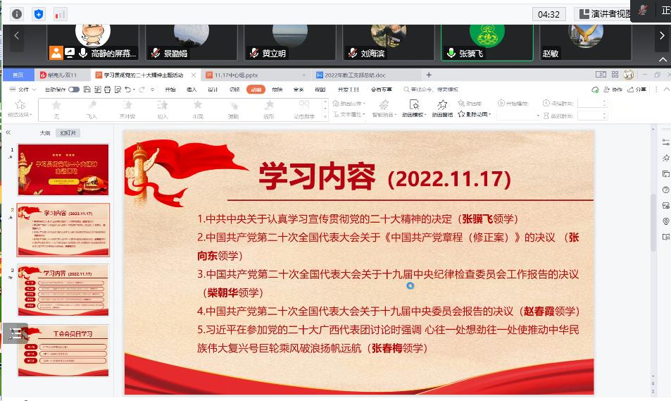 为深入推动习近平新时代中国特色社会主义思想和党的二十大精神入脑入心,迅速掀起学习宣传贯彻党的二十大精神的高潮,11月17日下午,十大买球的正规网站教工党支部在腾讯会议举行了党的二十大精神主题学习活动。